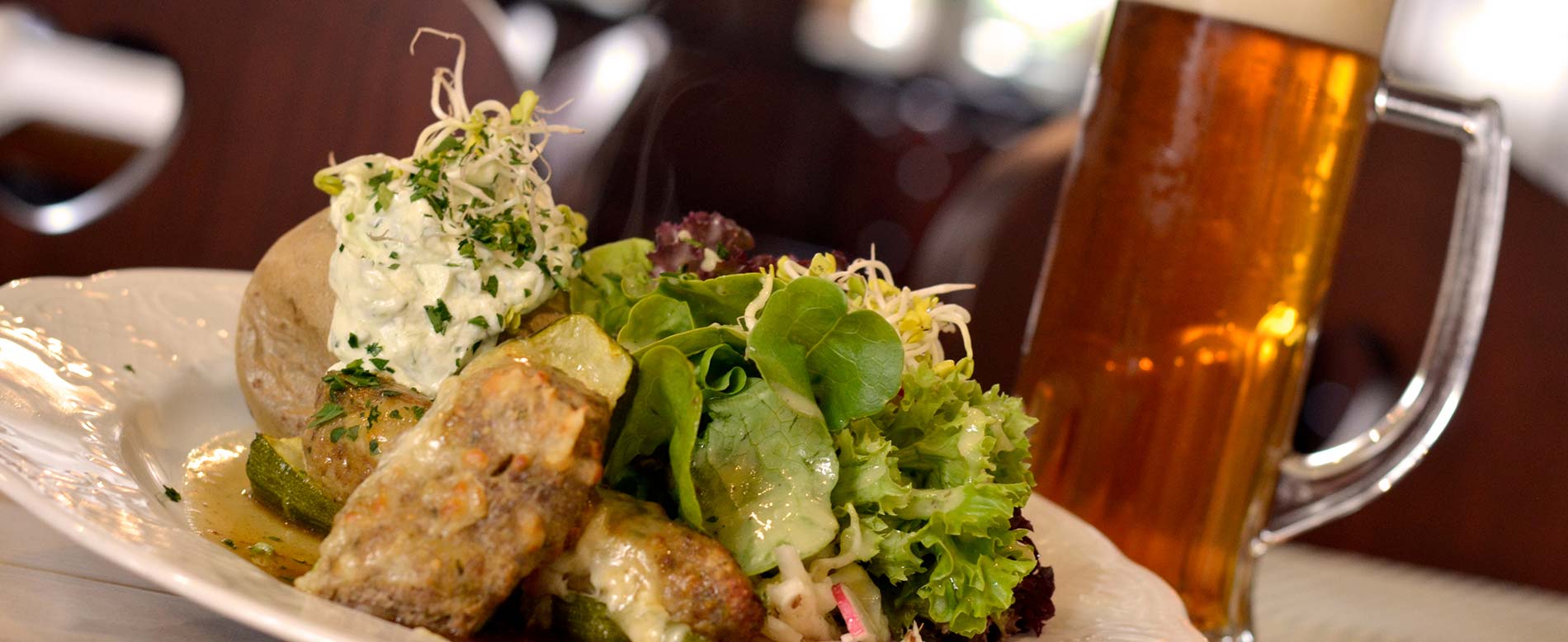 Wer es gerne traditionell-bayerisch mag, ist bei uns bestens aufgehoben. Vom klassischen Schweinebraten mit Knödel und Blaukraut, hin zu Fleischpflanzerl mit Kartoffelsalat oder Rollbraten mit Knödel und Salat – hier findet jeder sein Leibgericht.